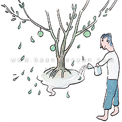 2) เวลาลงต้นไม้ใหม่ไม่ควรปลูกในดินที่ลึกมาก เอาแค่ให้โคนต้นลอยอยู่เหนือดินเล็กน้อย แต่เพื่อนผมดันก่อกระบะรอบโคนต้นและใส่ดินปลูกไม้ดอกเสียสวยเลย การระบายน้ำรอบโคนต้นจึงไม่ดี แถมยังรดน้ำบำรุงเป็นพิเศษอีก น้ำท่วมปาก พูดไม่ออกเลย