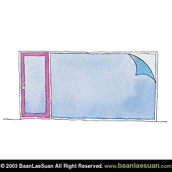 ฟิล์มกรองแสงนอกจากจะช่วยทำให้บ้านเย็นและให้ความเป็นส่วนตัวแล้ว ยังทำให้กระจกแข็งแรง(เหนียว)ขึ้นด้วย จึงเป็นไอเดียที่ดี ถ้าคุณคิดจะติดฟิล์มครับ ฟิล์มกรองแสงส่วนใหญ่ทำจากพอลิเอสเตอร์ แต่มีความสามารถในการกรองรังสียูวีและแสงสว่าง หรือกันความร้อนไม่เท่ากัน ถ้าคุณคิดจะใช้เพื่อความเป็นส่วนตัวเฉยๆ อาจเลือกชนิดที่กรองแสงสว่างมากหน่อย(สีเข้มๆ) แต่ไม่ต้องกรองรังสียูวีหรือกันความร้อนมากก็ได้