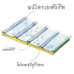 หลังคาเหล็กก็คือ แผ่นเหล็กรีดลอนเคลือบกันสนิม ที่เรียกว่า "เมทัลชีท" ขึ้นชื่อว่าเหล็กก็ต้องมีคุณสมบัตินำความร้อน ข้อดีคือ ไม่แตกไม่รั่วเพราะรอยต่อน้อย รีดมาจากโรงงานเป็นแผ่นยาว น้ำหนักเบา และใช้เวลาติดตั้งน้อยมากๆ วันเดียวเสร็จ หลังคาแผ่นเหล็กที่แนะนำให้ใช้กับบ้านเป็นชนิดที่มีชั้นฉนวนกันความร้อนติดมาด้วย ชนิดที่เป็นแผ่นเปล่าๆเก็บไว้ใช้กับโรงรถหรือศาลาจะดีกว่าครับ ชั้นกันความร้อนที่ว่าก็จะเป็นโฟมพอลิยูรีเทนที่พ่นติดด้านล่างของแผ่นแล้วปิดทับด้วยแผ่นพีวีซี บางคนจะเรียกว่าแบบ"แซนด์วิช" ถ้าจะให้กันความร้อนมากกว่านั้นอีกก็ปูฉนวนบนฝ้าเพดานอีกชั้น แล้วทำช่องระบายอากาศใต้หลังคาให้ดี
