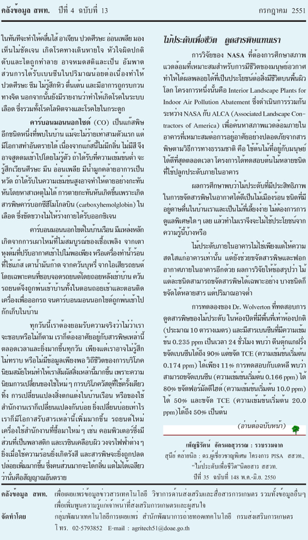 ไม้ประดับเพื่อชีวิต ดูดสารพิษแทนเรา