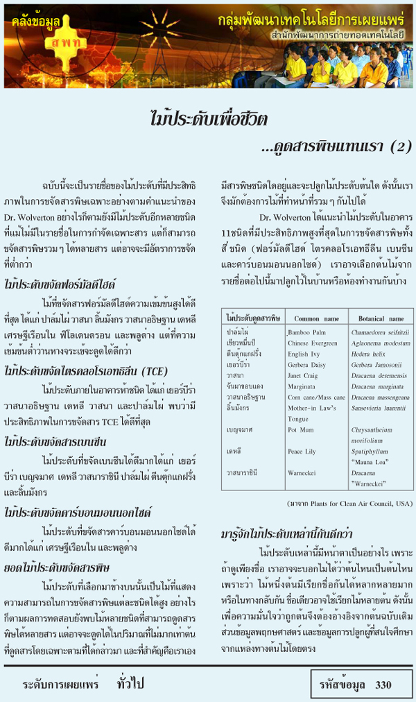 ไม้ประดับเพื่อชีวิต ดูดสารพิษแทนเรา
