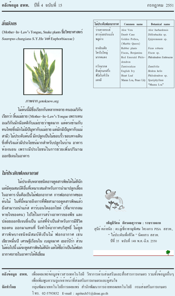 ไม้ประดับเพื่อชีวิต ดูดสารพิษแทนเรา