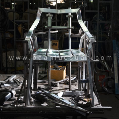 ?ไอเดียออกแบบเริ่มจากแนวคิดที่ต้องการใช้วัสดุให้น้อยชิ้นที่สุด ใช้เท่าที่จำเป็น? คุณกฤษณ์เล่าถึงที่มาที่ไปของเก้าอี้ตัวนี้ให้ฟัง เขาบอกว่าเริ่มจากการสเก็ตช์บนกระดาษ แล้วนำมาขึ้นรูปร่างด้วยคอมพิวเตอร์ ซึ่งช่วยในกระบวนการออกแบบเป็นส่วนใหญ่ เพราะต้องอาศัยการคำนวณมุมเหลี่ยมและองศาอย่างชัดเจน เพื่อให้ง่ายต่อกระบวนการผลิต และทำให้เห็นภาพที่เสมือนจริงมากที่สุด และขั้นตอนที่ขาดไม่ได้เลยคือการทำ ?ตัวต้นแบบ? ซึ่งจะได้ทั้งขนาดและรูปทรงเหมือนชิ้นงานจริงเกือบร้อยเปอร์เซ็นต์ หรือที่เรียกว่า ?Prototype? เพื่อทดสอบความแข็งแรงในการรับน้ำหนัก การนำไปใช้งานจริง และเพื่อให้รู้ถึงปัญหาในขั้นตอนการผลิตต่อไป
