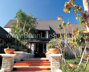 เนื่องจากเจ้าของมีความประทับใจในบ้านสไตล์ทิวเดอร์ของอังกฤษเป็นอย่างมาก จึงนำรูปแบบนี้มาใช้ในการตกแต่งบ้าน ซึ่งได้ คุณปรีชา ศาสตรวาหา แห่งบริษัท Design 507 จำกัด มาเป็นผู้ออกแบบ "เจ้าของบ้านอยากได้บ้านตากอากาศที่สามารถใช้รับรองแขกได้ ขณะเดียวกันก็ยังคงความเป็นส่วนตัว ผมจึงออกแบบให้เข้ากับสภาพแวดล้อม โดยเติมกลิ่นอายความเป็นโอเรียนทัลลงไป เพื่อให้บรรยากาศของบ้านดูอบอุ่นขึ้น และมีการผสมผสานวัสดุธรรมชาติที่ให้ผิวสัมผัสแตกต่างกันอย่างหินกับไม้ บ้านจึงดูไม่เรียบจนเกินไป และเนื่องจากบ้านหลังนี้ใช้สีเอิรธ์โทนตกแต่งเสียเป็นส่วนใหญ่ อารมณ์จึงดูนิ่งๆไปนิด ผมอยากให้แต่ละห้องมีสีสันน่าสนใจมากขึ้น จึงวางของตกแต่งอย่างหมอนหรือภาพเขียนที่มีสีสันสะดุดตา ขณะเดียวกันก็มีการเชื่องโยงกันด้วยวัสดุที่ใช้ ซึ่งก็เป็นวัสดุที่มีตามธรรมชาติอย่างหวายหรือผ้าไหม เพื่อให้เกิดความกลมกลืน"