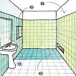 1. ทำห้องให้ดูกว้างขึ้น ด้วยการกรุผนังกระเบื้องให้สูงไม่ถึงเพดาน เช่น สูงแค่ส่วนบนของประตูก็พอ จากนั้นก็ทาสีผนังส่วนที่เหลือเป็นสีเดียวกับเพดาน ถ้าใช้สีขาวสว่างๆได้จะดีมาก เพดานจะดูกว้างขึ้น